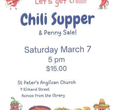 Chili supper March 7, 2026 at 5pm